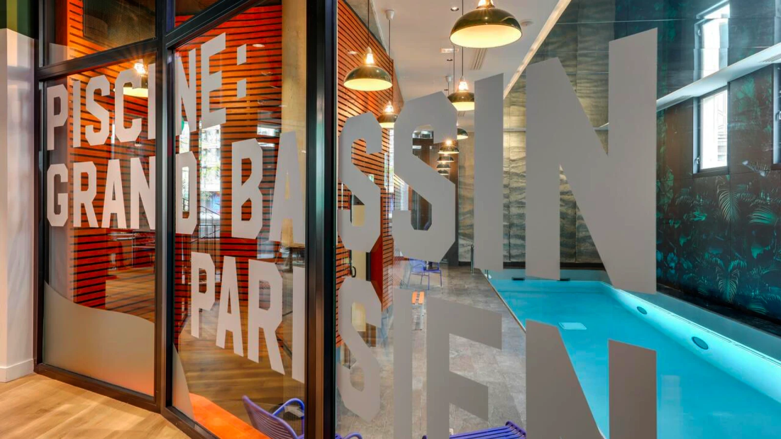 The ground floor was redesigned as a multifunctional and welcoming urban hub: restaurant, café, bar, swimming pool, fitness center, meeting rooms, kids' recreation area… all open to the city. Warm tones, expressive graphic codes, and lush vegetation create a vibrant harmony throughout the space.