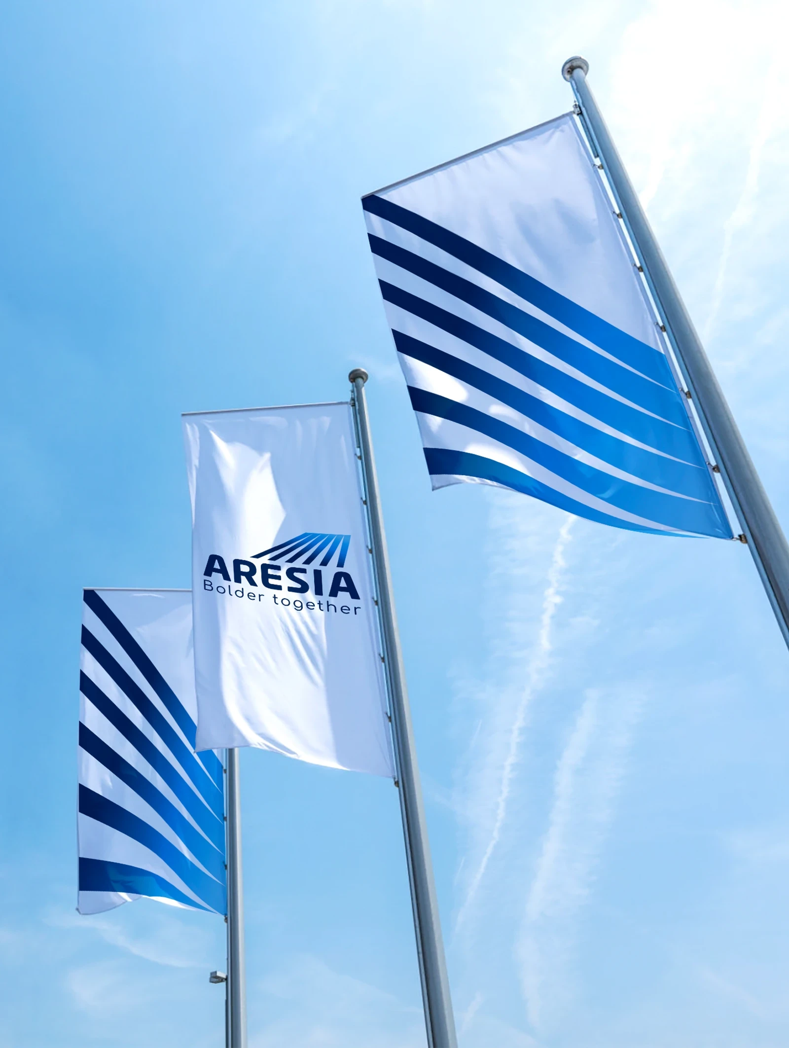 De la contraction d’Arès, dieu des activités militaires dans la mythologie grecque, et d’Aria, signifiant l’air, la mélodie - et du terme grec aura, personnification de la brise et de l’air frais du matin, Aresia sonne comme un nom puissant. Il renvoie à l’aéronautique militaire et civile, tout en traduisant l’audace d’un nouveau groupe tourné vers l’avenir.